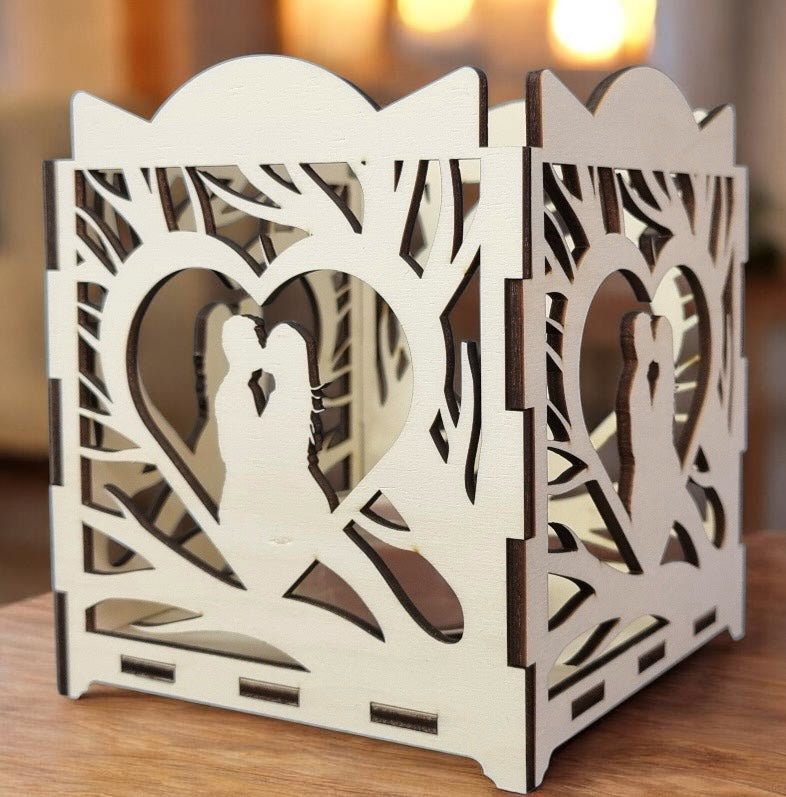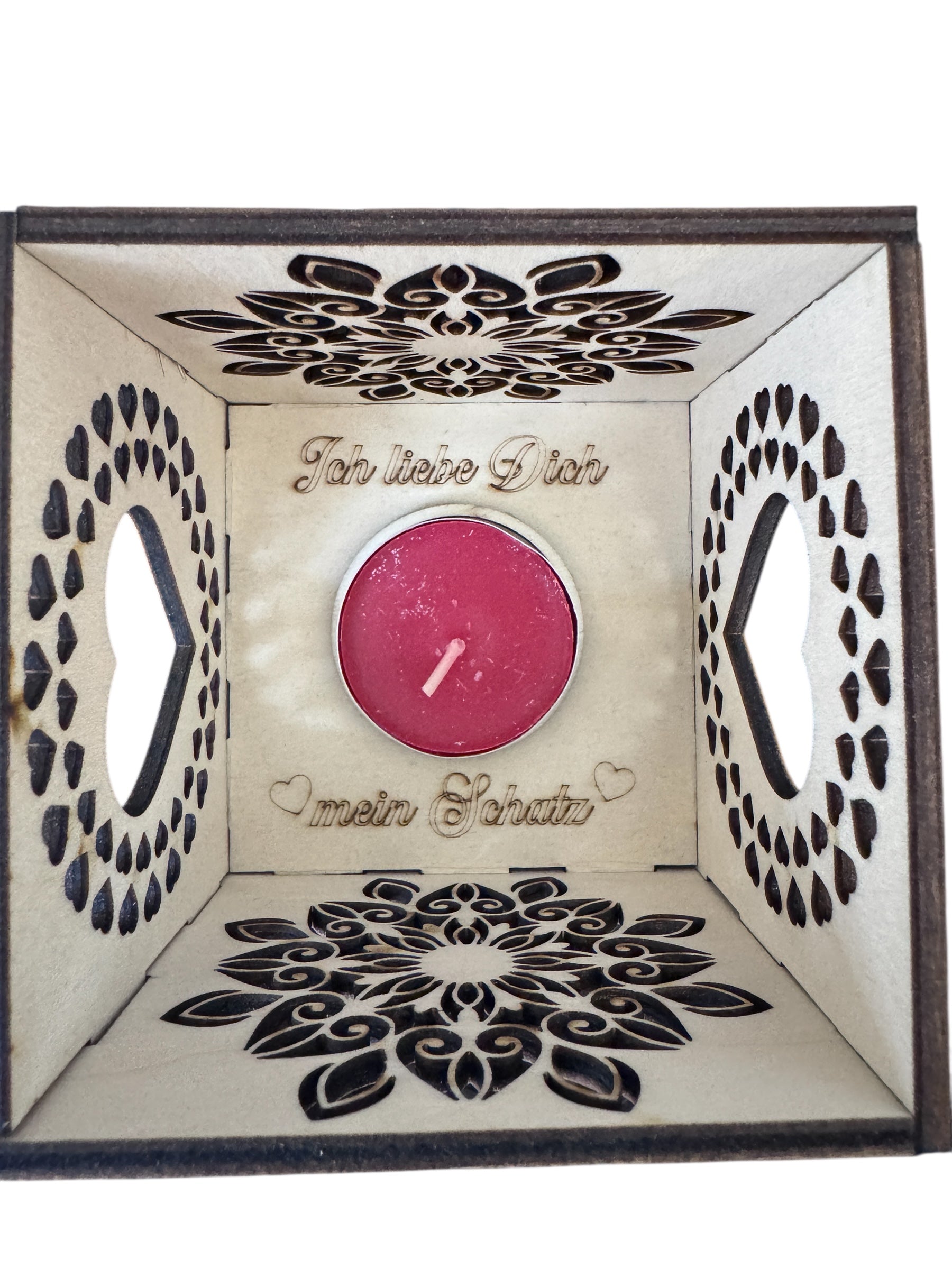 Handgefertigte Holz-Dekolaterne / Windlicht – Romantische Geschenkidee zum Valentinstag