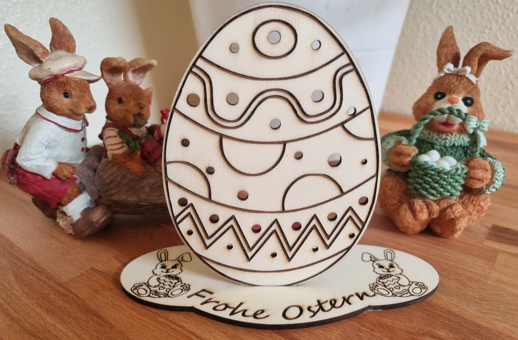 Ein dekoratives Highlight für die Osterzeit, das Wärme, Natürlichkeit und Handwerkskunst vereint.